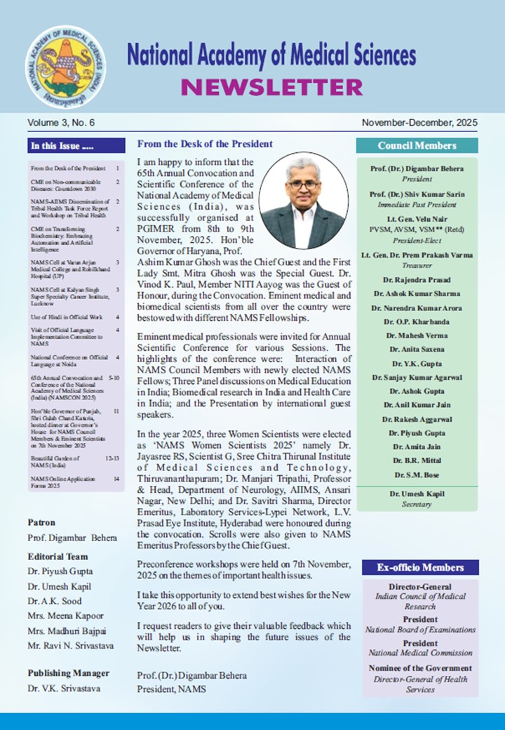 National Biostatistics Helpline (BIOSTAT LINE ) for Medical Postgraduates on Teacher’s Day 4. MID TERM NAMSCON 2025 5. NAMS Family Members 2024 8. "Invitation of Applications for International NAMS Fellowships & International NAMS Memberships from Medical Doctors and Scientists who are Nationals of Foreign Countries, NRIs,OICs" 8. Academy is updating the contact details of its NAMS Members (MNAMS):-