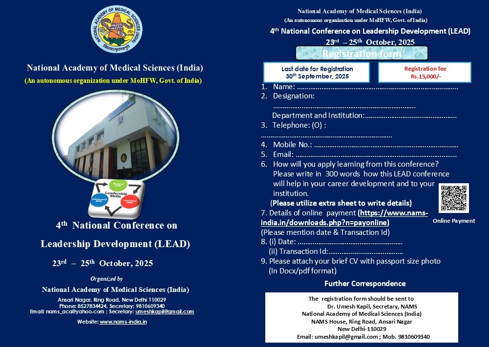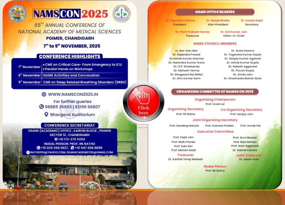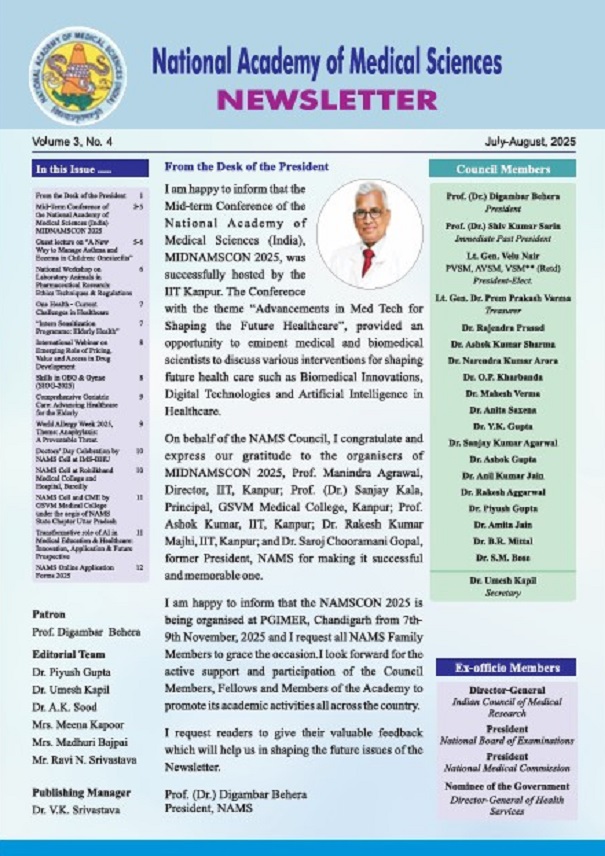 National Biostatistics Helpline (BIOSTAT LINE ) for Medical Postgraduates on Teacher’s Day 4. MID TERM NAMSCON 2025 5. NAMS Family Members 2024 8. "Invitation of Applications for International NAMS Fellowships & International NAMS Memberships from Medical Doctors and Scientists who are Nationals of Foreign Countries, NRIs,OICs" 8. Academy is updating the contact details of its NAMS Members (MNAMS):-